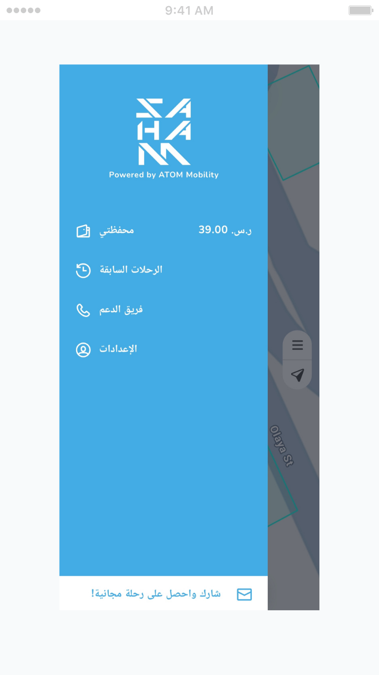 كل رحلتك تبدأ من هنا التطبيق هو مركز التحكم بسكوتر سهم: اختيار، تشغيل، متابعة، وإنهاء الرحلة — كل شيء في مكان واحد. For iPhones For Android انضم إلى أكثر من 15000 عميل سعيد تحكّم كامل أثناء القيادة بدون خطوات معقّدة تطبيق سهم تحكّم ذكي في تنقّلك اليومي كل ما تحتاجه لاستخدام سكوتر سهم، من العثور عليه إلى إنهاء الرحلة، بخطوات واضحة وتجربة سهلة. العثور على السكوتراعرف مواقع سكوترات سهم القريبة منك وشاهد حالتها قبل بدء الرحلة. التحكّم بالرحلةابدأ الرحلة، اختر وضع القيادة، وأنهِ الاستخدام من التطبيق. استخدام آمنتنبيهات وإرشادات تساعدك على قيادة آمنة ومنظّمة. حمّل تطبيق سهم وابدأ رحلتك اليوم ماذا يقدّم لك تطبيق سهم؟ تحكّم كامل بالرحلةتشغيل السكوتر، اختيار الإعدادات، وإنهاء الاستخدام بسهولة. رؤية فورية للمحيطتعرف ما المتاح حولك، وأين يمكنك الذهاب والتوقف. إعدادات تناسبكاختر أسلوب القيادة الذي يناسب وقتك وطريقك. إشعارات ذكيةتنبيهات واضحة أثناء الاستخدام بدون تشويش. إدارة الاستخدامكل تفاصيل رحلتك محفوظة ويمكن الرجوع لها. For iPhones For Android حمل تطبيق سهم حان وقت استكشاف المدينةاختر أسهل وأكثر الطرق متعة للتنقّل داخل المدينة، واترك الازدحام خلفك. حمّل تطبيق سهم الآن واستمتع بتجربة تنقّل ذكية وسلسة. تحكّم كامل من مكان واحد كل ما تحتاجه لبدء رحلتك وإدارتها موجود داخل التطبيق، بخطوات بسيطة وتجربة استخدام سلسة. SAHAM APP أسطول سهم مصمّم ليمنحك تجربة تنقّل عملية ومريحة داخل المدينة. خيارات استخدام مرنة مزايا استخدام متنوعة يوفّر سهم خيارات استخدام مصمّمة لتناسب احتياجات مختلفة، سواء للتنقّل اليومي أو للاستخدام عند الحاجة، مع قيمة أفضل مقابل الاستخدام. استخدام حسب الحاجةيمكنك استخدام السكوتر عند الحاجة فقط، حيث يتم احتساب الاستخدام تلقائيًا بناءً على مدة الرحلة، دون أي التزامات طويلة. اشتراك يناسب نمطكللاستخدام المتكرر، يقدّم سهم خيارات اشتراك تتيح تنقّلًا أكثر واستفادة أعلى خلال الشهر. أسطول سهم مصمّم ليمنحك تجربة تنقّل عملية ومريحة داخل المدينة. استئجار أسرع وتجربة أفضل 1حمّل تطبيق سهمابدأ استخدام السكوتر خلال دقائق عبر تطبيق واحد يسهّل عليك كل خطوات الرحلة. 2تشغيل فوري من التطبيقاعثر على السكوتر القريب منك وابدأ رحلتك مباشرة بدون إجراءات معقّدة. 3خرائط وتتبع دقيقيوفّر التطبيق خرائط مدمجة ونظام تحديد المواقع لمتابعة السكوتر ومناطق القيادة والتوقف. 4دعم مباشر داخل التطبيقتواصل مع فريق الدعم بسهولة في حال احتجت أي مساعدة أثناء الرحلة. 5إدارة الحساب والدفعتحكّم ببيانات حسابك ووسائل الدفع مباشرة من خلال تطبيق سهم. 6إشعارات وتنبيهات فوريةتابع حالة الرحلة والتنبيهات المهمة أثناء الاستخدام عبر التطبيق.